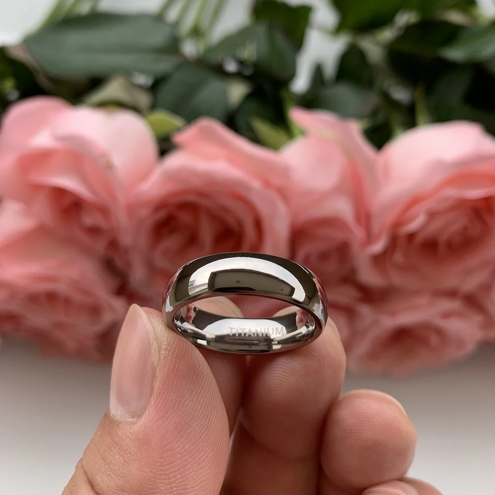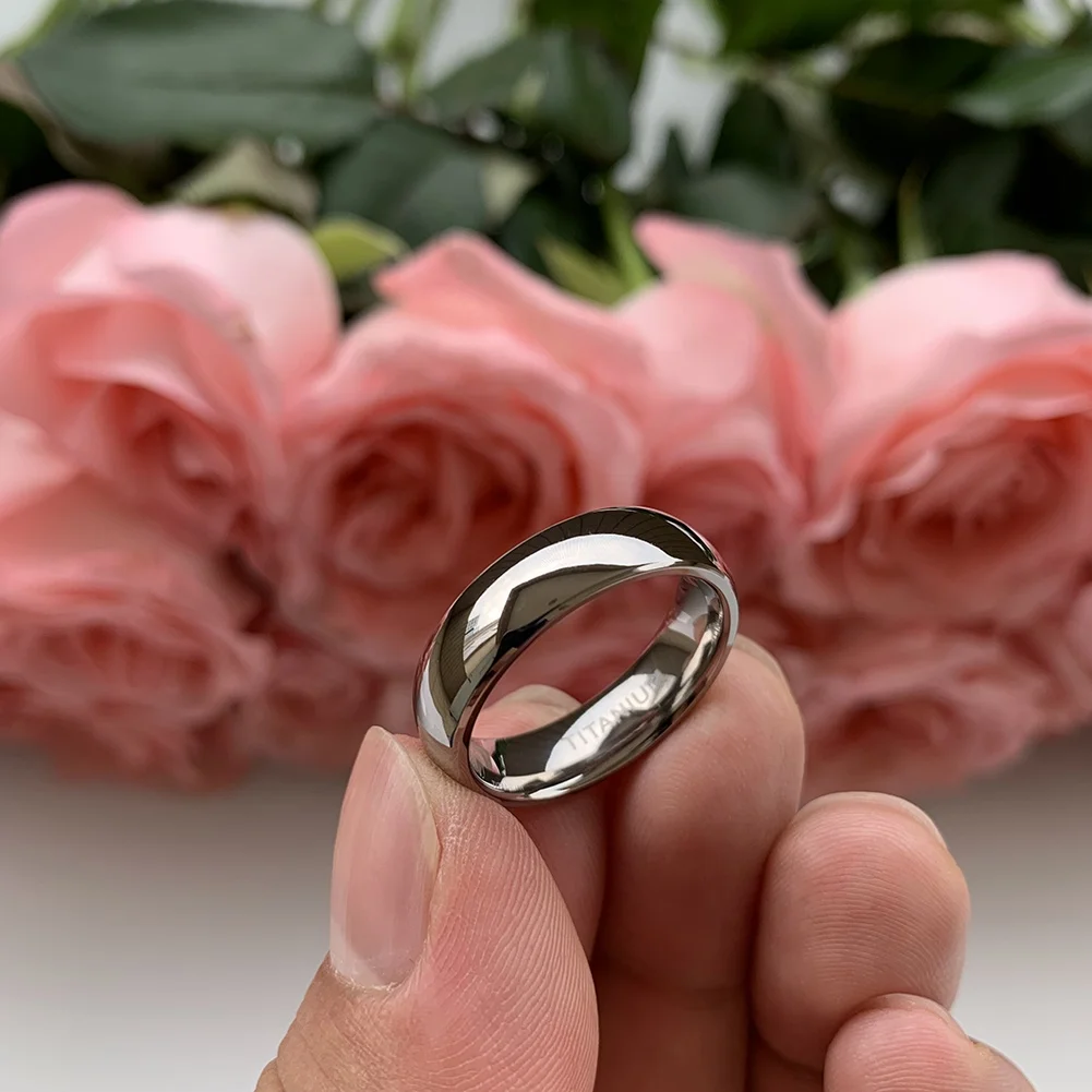 Coolstyle Jewelry Domed Polished Shiny 6mm Wholesale Titanium Ring for Men Women Fashion Engagement Wedding Band Comfort Fit